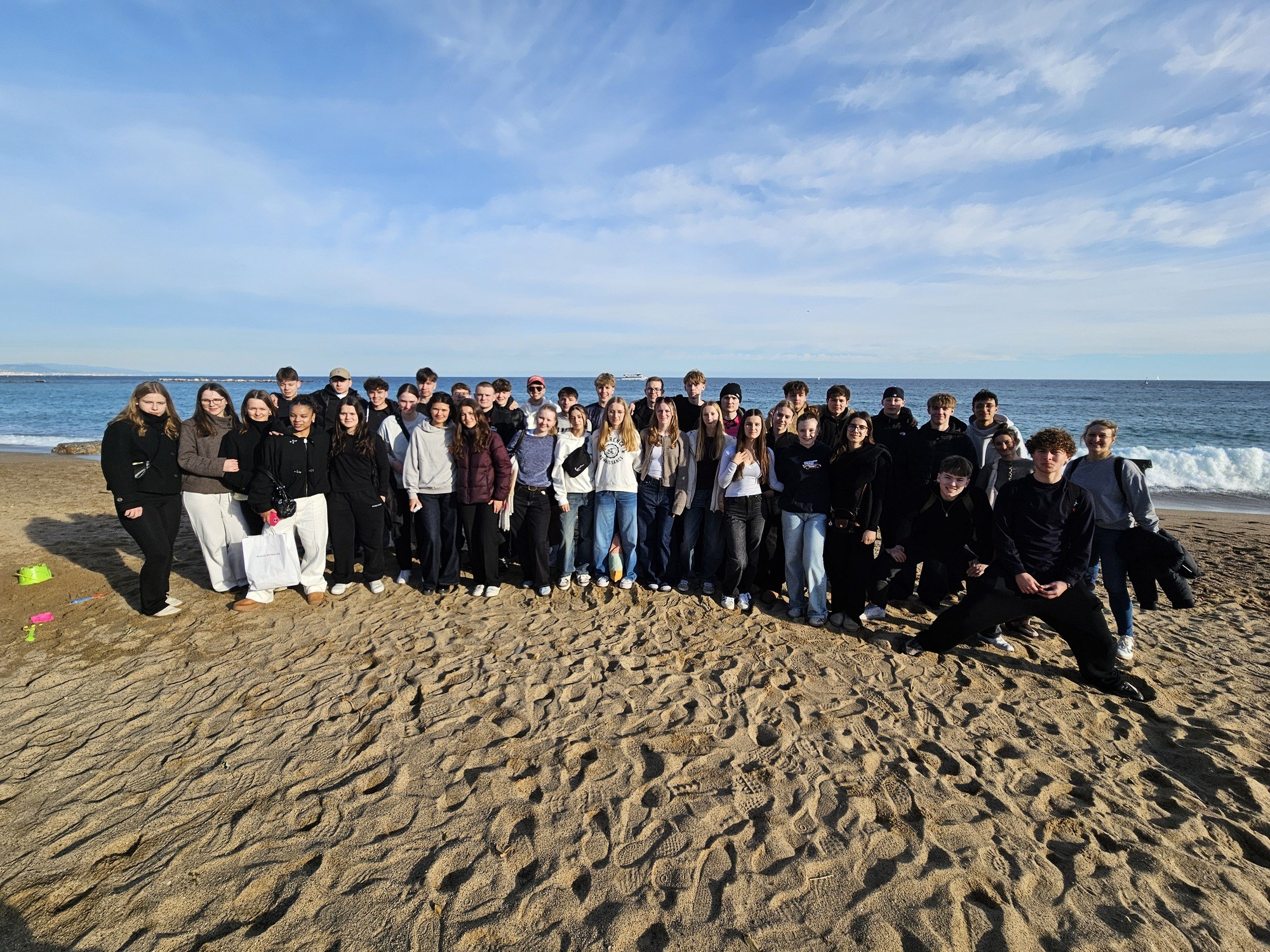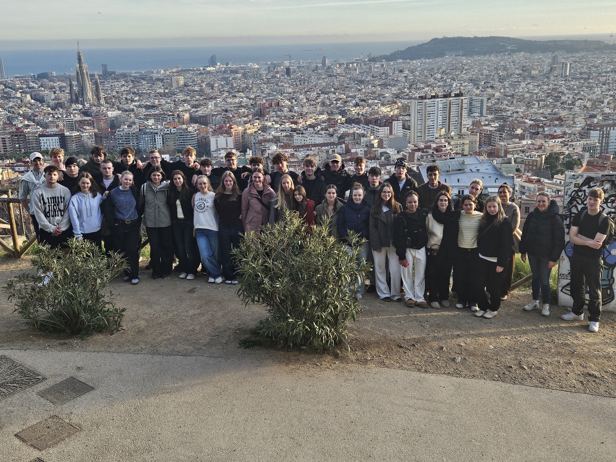 Der erste Schreck war schnell überwunden, schließlich erwartete uns die Weltmetropole Barcelona bei Sonnenschein und angenehmen Temperaturen. Und so spazierten 37 reiselustige Spanischlernende des 11. Jahrgangs gemeinsam mit Frau Bertram, Frau Kornett und Herrn Agirman in den darauffolgenden Tagen durch die einzigartige Sagrada Familia, erklommen den Montjuic und die Bunkers del Carmel und genossen fantastische Aussichten, besuchten den Parque Güell, entdeckten Barcelonas Altstadt, die Flaniermeile Rambla, den Mercado Boqueria, den Strand und die Font Màgica, bestaunten die das Stadtbild prägenden Gebäude des Architekten Gaudí, statteten dem Camp Nou einen Besuch ab und probierten sich durch Bocadillos, Tapas und Paella. Wer braucht da schon Koffer! Die gute Stimmung der Reisegruppe Barcelona 2026 konnten die erschwerten Bedingungen jedenfalls nicht trüben. :-)
