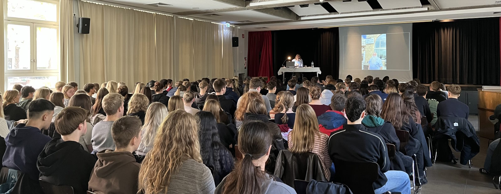 Igal Avidan hat Israel im Jahr 2021 auf der Suche nach kleinen Anzeichen des Friedens zwischen jüdischen und arabischen Israelis bereist und Schülerinnen und Schülern des 12. und 13. Jahrgangs durch Fotos und berührende Geschichten anschaulich von den Menschen berichtet, die in ihrem Alltag zeigen wollen, dass Zusammenleben gelingen kann und ein Leben ohne Krieg und Mauern möglich ist. Von diesen persönlichen Eindrücken erzählt auch sein Buch „Es werde Licht“, aus dem er vorgelesen hat.