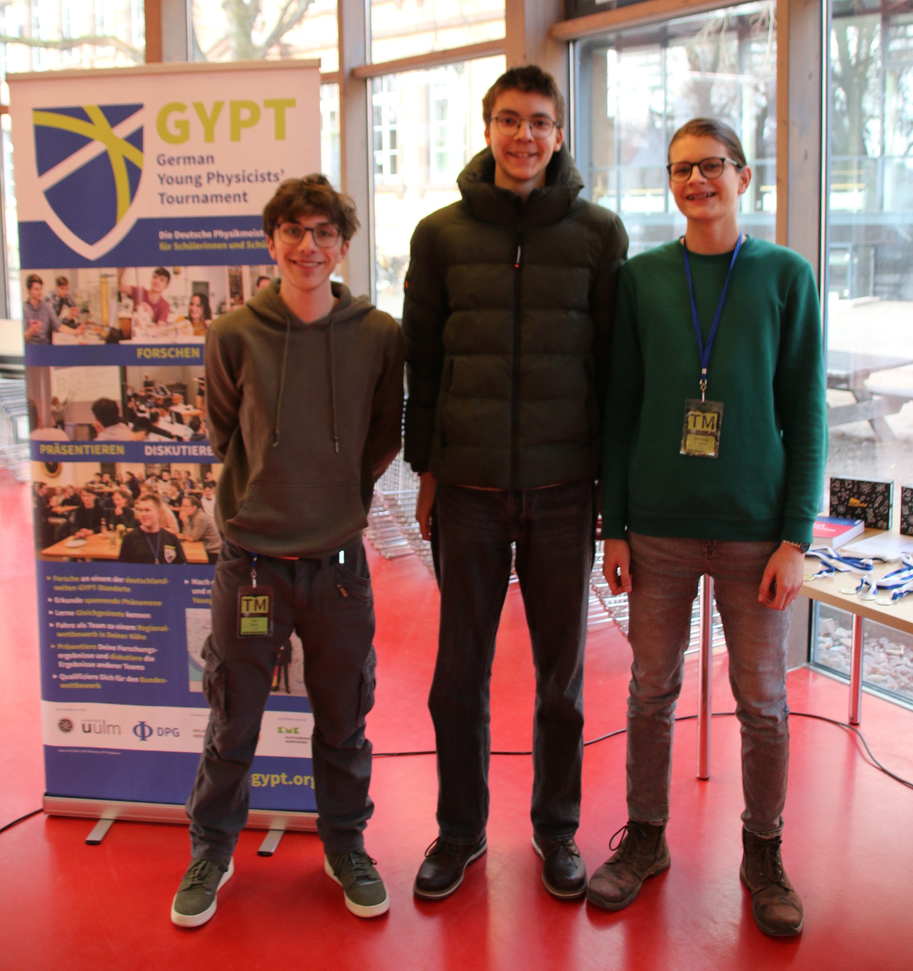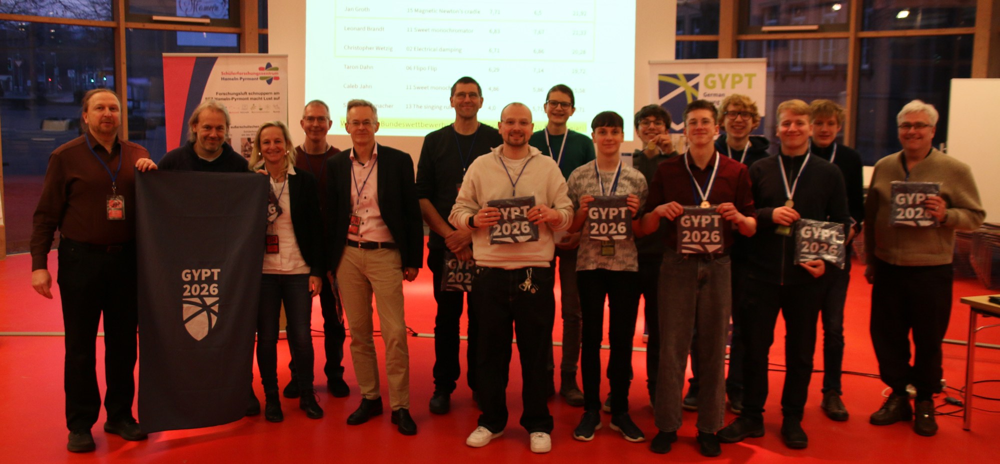 Taron Dahn, Eric Stefan Vanselow und Phil Peters vom Schiller-Gymnasium Hameln haben sich mit ihrem Team „π-ed piper“ beim Regionalwettbewerb der Deutschen Jugend-Physikmeisterschaft GYPT am Samstag, den 24.01.2026 mit hervorragenden Leistungen gegen die beiden anderen Schülerteams durchgesetzt und können sich nun stolz Südniedersächsische Physikmeister 2026 nennen.