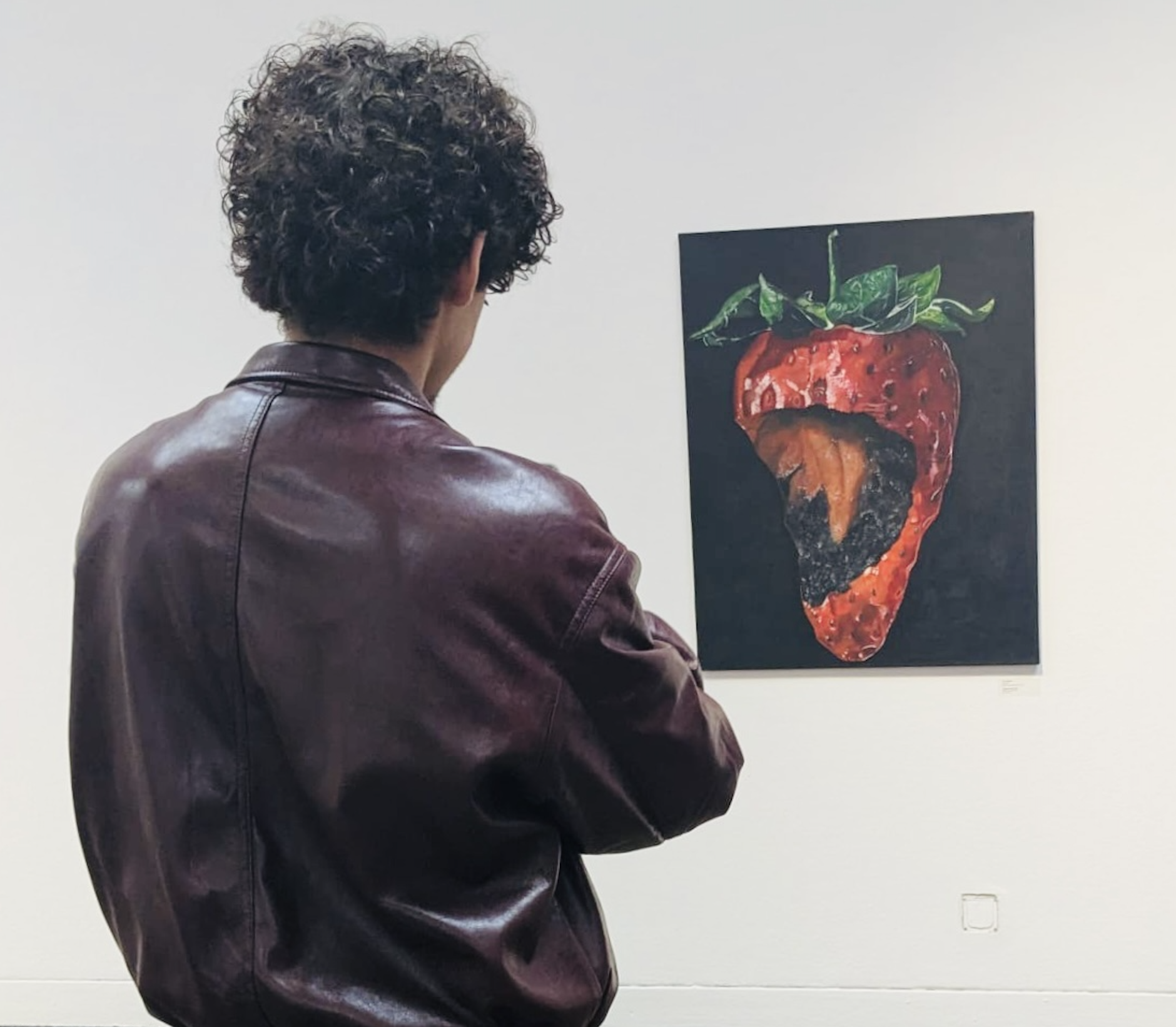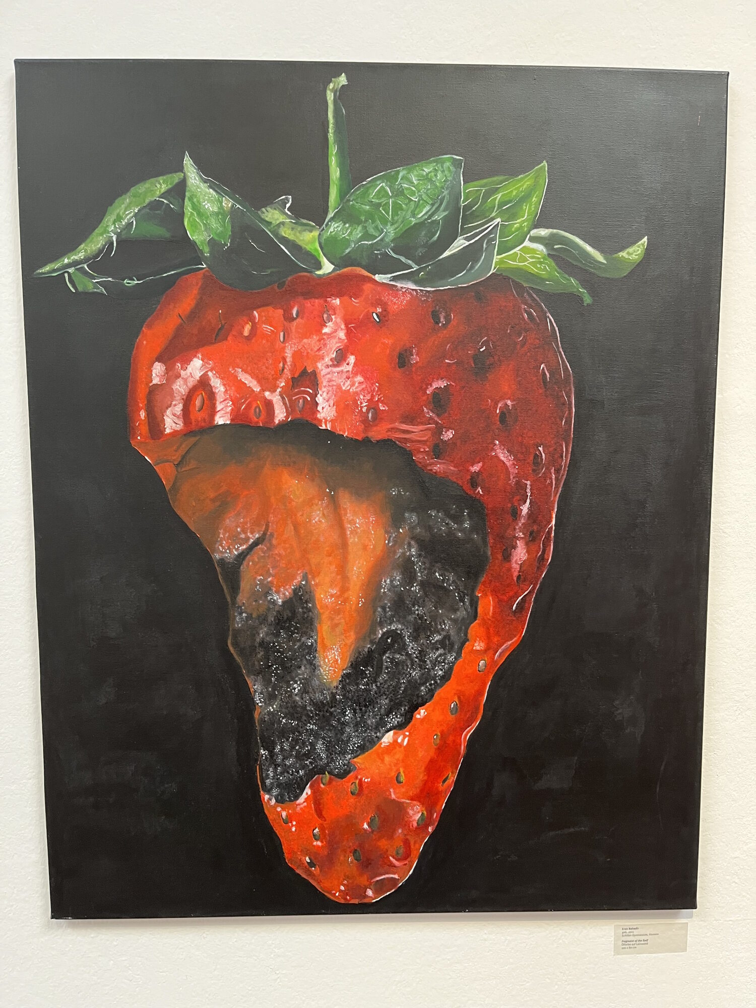 Persönliche Reflexion zum Kunstwerk durch den Künstler selbst: „‚Fragment of the Self‘ entstand aus meiner tiefen Auseinandersetzung mit der inneren Zerbrechlichkeit, die uns oft im Verborgenen begleitet. In einer Welt, in der wir nach außen oft perfekt erscheinen müssen, wollte ich den verborgenen Schmerz und die Risse im Selbst sichtbar machen. Die leuchtende Erdbeere, die von außen so einladend wirkt, steht für die Fassade, die wir zeigen, während im Kern eine tiefe Zerrissenheit liegt. Diese Spannung zwischen äußerem Schein und innerer Wunde ist ein universelles Gefühl, das ich hier in einem symbolischen Moment festhalten wollte – ein Fragment, das in uns allen lebt und uns auf einer stillen, aber kraftvollen Ebene verbindet.“