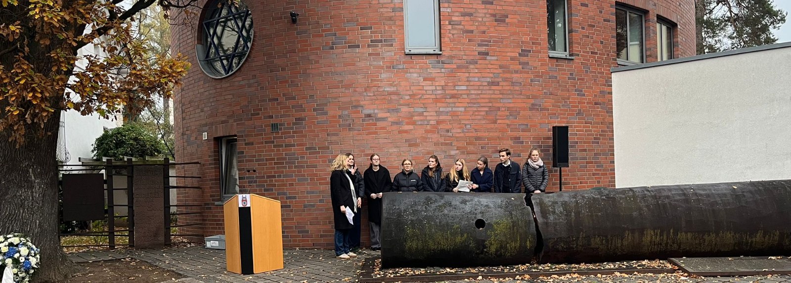 Etwa 150 bis 200 Teilnehmerinnen und Teilnehmer hatten sich am Nachmittag des 9. November anlässlich des 87. Jahrestags der Reichspogromnacht vor der jüdischen Synagoge in der Bürenstraße eingefunden. In einer Gedenkfeier hörten sie Statements der Hamelner Schülerinnen und Schüler des Schiller Gymnasiums. Der Religionsleistungskurs von Frau Hortsch und die Antirassismus AG von Frau Rose hatten sich dieser Aufgabe gewidmet. 87 Jahre nach der Tat sei Vergessen gefährlich, denn Erinnern bedeute Widerstand und sei ein Auftrag für die Gegenwart.