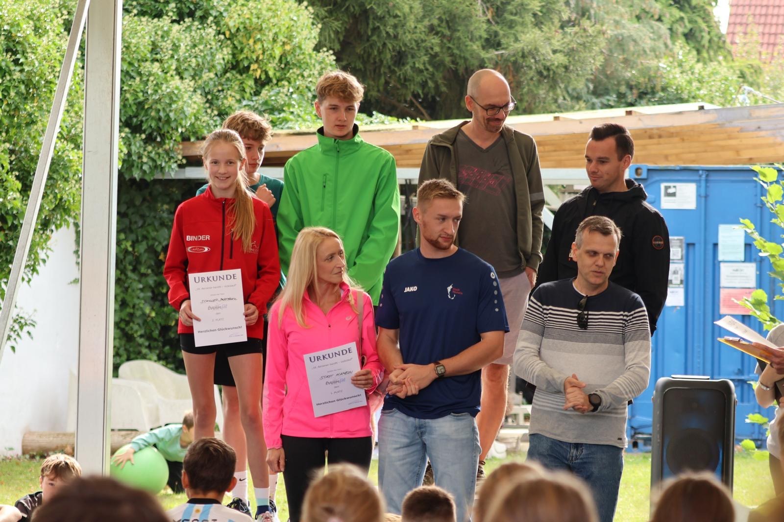Mit phantastischen Zeiten sicherte uns Familie Schwone (vertreten durch Leo aus Jg.13 und Bennet aus Jg.10), unterstützt durch eine bärenstarken Zeit von Henriette Rekate (Jg.8) den zweiten Platz im Teamlauf. Henriette, als erste Dame unter den Top 3 der Sportprofiler, legte als zweite Dame des gesamten Wettkampfs gleich mal die Messlatte für kommende Generationen deutlich nach oben - Gratulation!